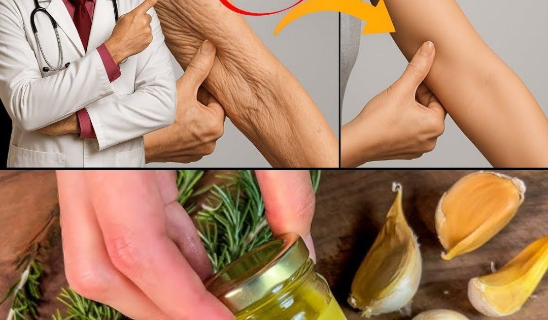 A simple rosemary and garlic oil infusion has quietly gained attention in the natural skincare world for its ability to support firmer, smoother, and healthier-looking skin, especially on arms, hands, neck, and legs.